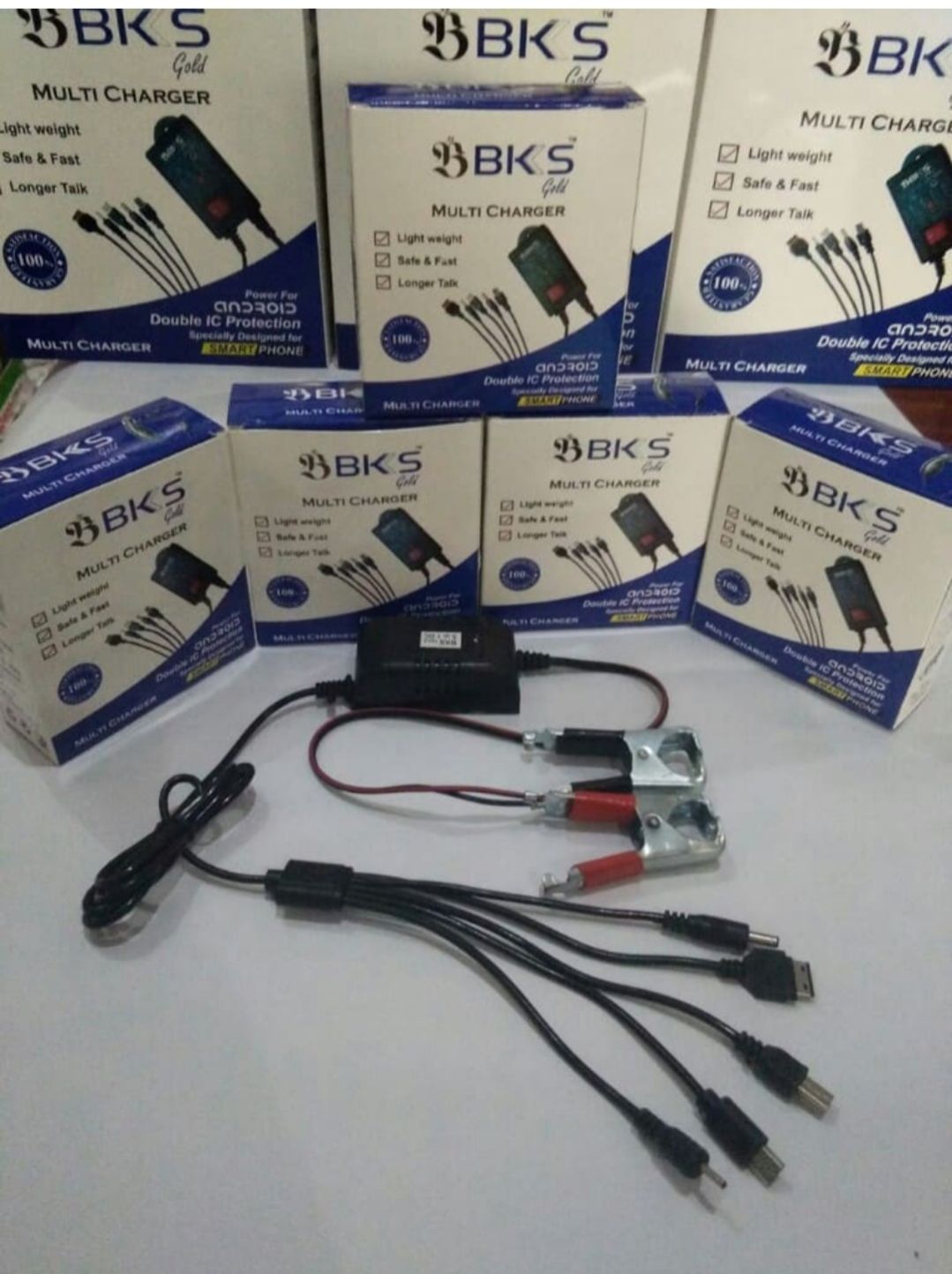 The 5-in-1 DC Charger is designed for versatility, featuring multiple connectors to charge various devices efficiently. It includes: